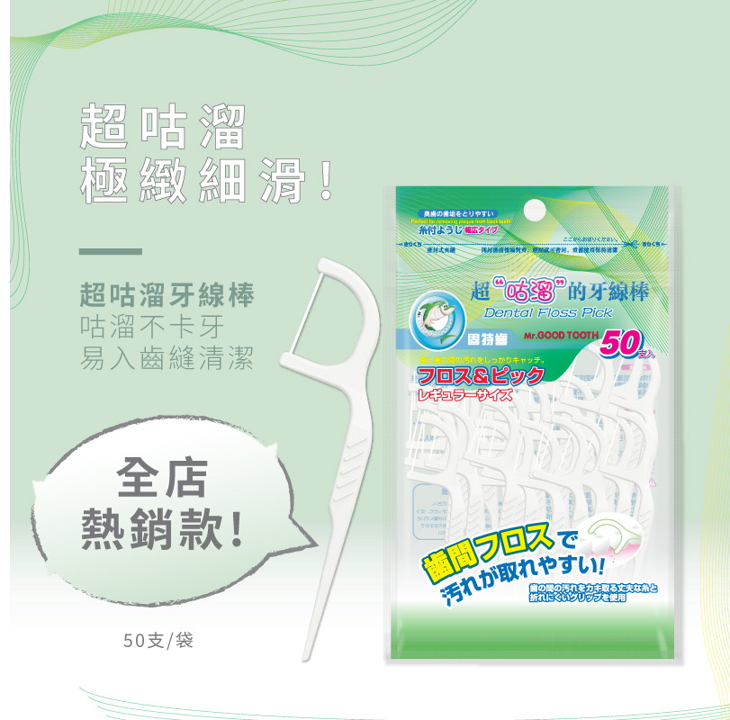 超咕溜的牙線棒使用方便衛生,能深入牙縫,去除牙刷清潔不到的地方。採用高韌性超極細滑牙線材質,牙線更易於滑入緊密的牙縫 間。產品不易斷裂、不易卡牙、 不易起毛、不易抽絲、能輕鬆進入牙縫不費力,使用時不損傷牙齦,能幫助自然清新, 不會因為殘留的食物殘渣發酵而產生異味,幫助減少酸性物質的產生,是您口腔保健的最佳選擇。